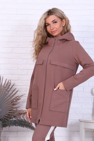 Толстовка женская прямого силуэта с двумя карманами по бокам, на кокетке отделка в виде планок, рукава на манжетах, капюшон.