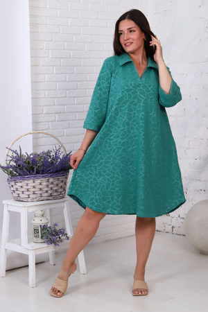Виктория Анатольевна18.10.2022 в 03:25Платье великолепно село на фигуру груша, длина по середину колена (рост 166 см). Заказывала зелёное платье, пришло зелёное, но рисунок как на голубом. На работу идеальный вариант на осень-весну