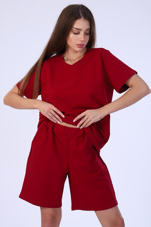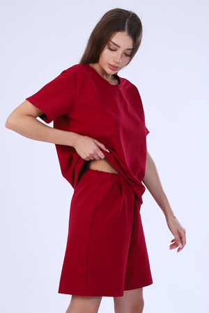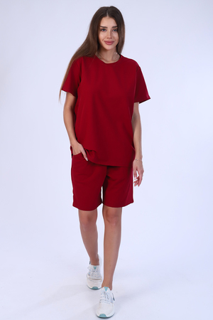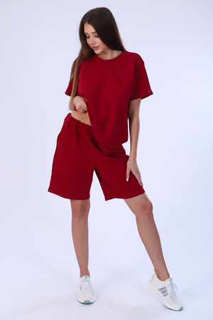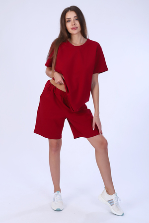 Костюм женский из футера 2-х нитки. Костюм состоит из шорт и футболки. Шорты свободного покроя с карманами. Футболка - свободного кроя, прекрасный вариант как для прогулки, так и для повседневного ношения. Рукава короткие. Костюм подходит для дома и отдыха.