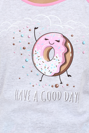Костюм женский состоит из топа и шорт. Топ прямого кроя на бретелях, на полочке расположена печать. Шорты короткие с высокой посадкой, низ обработан на плоскошовной машине. Костюм идеально подходит для дома и сна. Благодаря натуральному составу в данном костюме вам будет комфортно.