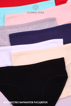 Трусы женские в рубчик, выполнены из 95% хлопка и 5% спандекса. В упаковке 4 штуки одного размера в разных цветах.