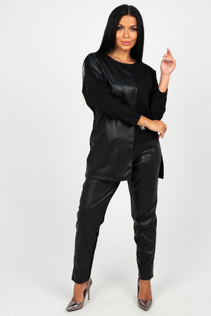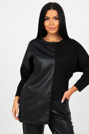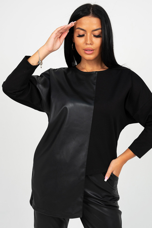 Эффектная туника из плотного трикотажа премиум качества со вставкой из эко-кожи и элегантным силуэтом. Туника идеально сидит по фигуре, при носке не закатывается и не мнётся. Модель преподносит Вашу фигуру в самом выгодном свете!