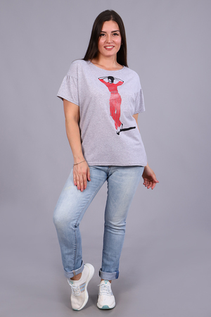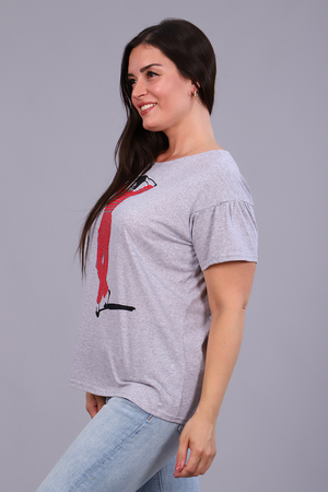 Футболка с ярким стильным принтом из кулирки, круглая горловина, спущенное плечо, фигурная пройма, короткий присборенный по плечу рукав. Модель в стиле оверсайз, комфортная, приятная к телу, необходимая базовая вещь в женском гардеробе, отличный вариант для работы в офисе, активного отдыха и прогулок.