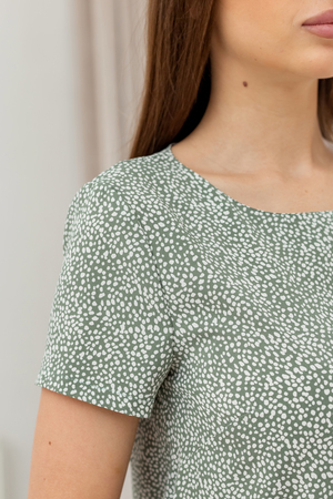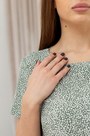 Свободное платье не сковывает движения, оборка по низу изделия добавляет нежности и мягкости; в этой одежде комфортно в течение всего дня. Платье подойдёт для работы в офисе, для прогулок на свежем воздухе и для вечеринок. Эта модель подойдёт большинству типов фигур. Силуэт платья свободный, рукав втачной. Горловина обработана обтачкой.