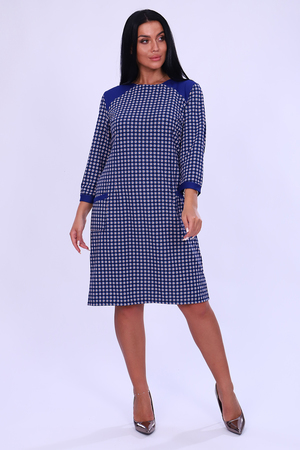 Платье женское прямого силуэта, округлый воротник, рукав 3/4 на манжете, на передней полочке накладные карманы. Практично и удобно.