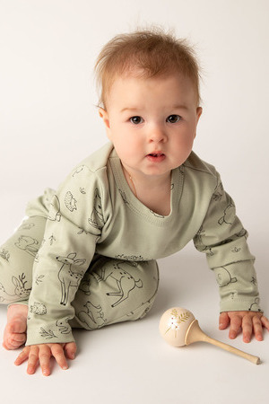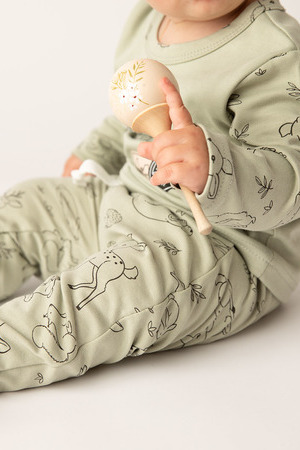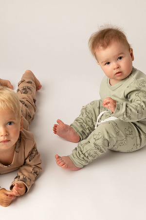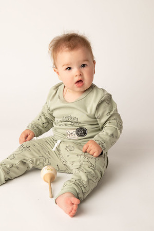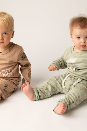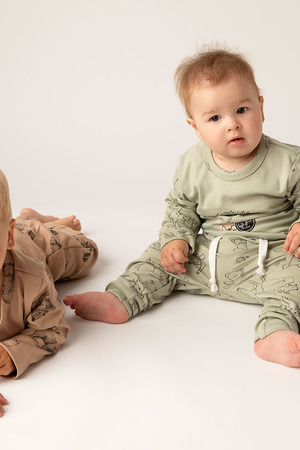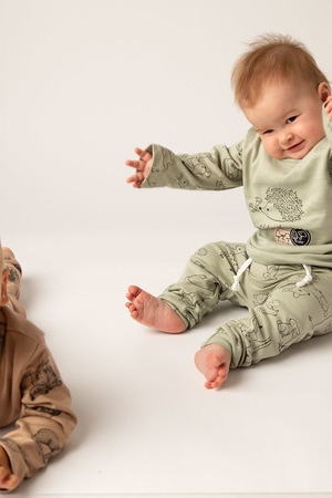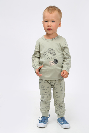 Стильный костюм для самых маленьких и немного постарше детишек, из нежного, мягкого, приятного к телу трикотажа-интерлока. Ткань 100% хлопок. Абсолютно гипоалергенна. Застежка на кнопках, свободный крой. Материал высокого качества сохраняет форму и легко стирается. Хлопок обеспечивает отличную терморегуляцию и воздухообмен, чтобы ребенок не потел. В такой одежде Ваш малыш всегда будет чувствовать себя комфортно и уютно. Лонгслив с длинным рукавом и интересной печатью, повторяющей основной рисунок. Удобные не стесняющие штанишки на широком поясе с манжетами по низу. На поясе шнурок. Отлично подойдет для повседневных прогулок, в детский садик или в качестве домашнего костюма