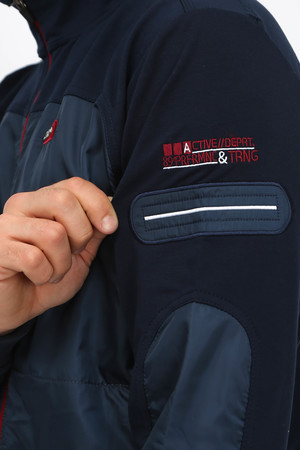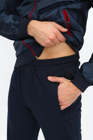 Спортивный мужской костюм. Кофта на молнии, спереди и на рукавах декоративная вставка из плащевки, сбоку вышивная надпись. Воротник - стойка, низ кофты и рукава на манжетах. Брюки прямого кроя, карманы на молнии. Костюм отличного качества из турецкой ткани. Подойдет для прогулок, спорта, отдыха.
