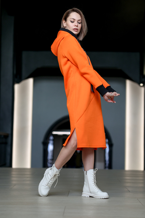 Спортивное платье женское выполнено из футера 3-х нитка с начесом. Платье с капюшоном незаменимая вещь в гардеробе для прогулок и отдыха. Платье оверсайз сочетается как с кроссовками, грубыми ботинками, кедами, лоферами так и туфлями на каблуке, как спорт-шик. Трикотажное платье можно использовать как повседневную одежду, офисную, спортивную или домашнюю. Практичное и удобное, но при этом женственное платье.