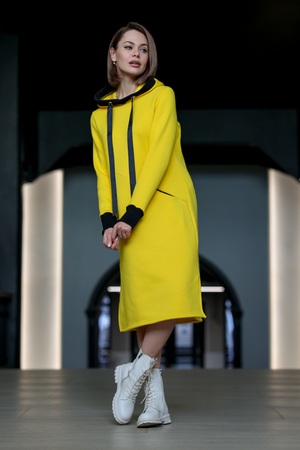 Спортивное платье женское выполнено из футера 3-х нитка с начесом. Платье с капюшоном незаменимая вещь в гардеробе для прогулок и отдыха. Платье оверсайз сочетается как с кроссовками, грубыми ботинками, кедами, лоферами так и туфлями на каблуке, как спорт-шик. Трикотажное платье можно использовать как повседневную одежду, офисную, спортивную или домашнюю. Практичное и удобное, но при этом женственное платье.