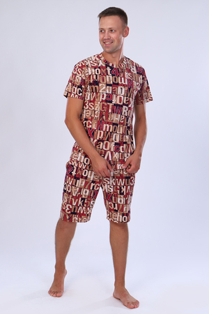 Мужские шорты чуть выше колена с боковыми карманами в шве на широкой резинке на талии. По ткани - рисунок в виде букв и цифр. Яркие стойкие расцветки моделей на любой вкус. Шорты выполнены из 100% хлопковой ткани, кулирки. Прекрасно носятся, как домашняя одежда, а также для повседневной уличной носки, для спорта, в дорогу, на дачу, на прогулку, в отпуск и т д. Шорты данной модели и футболка 71017 образуют прекрасный домашний, уличный, спортивный костюм / пижаму (продаются отдельно).