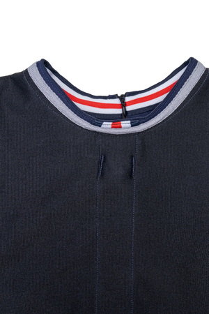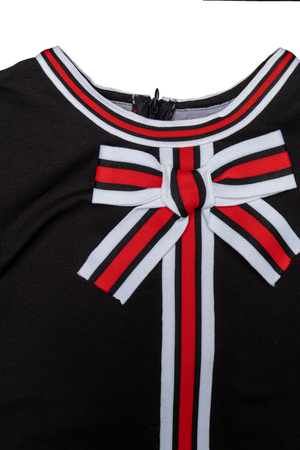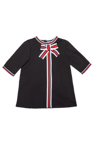 Элегантное платье для девочки для особых случаев и для повседневного наряда. Стильное платье выполнено из трикотажного полотна двунитки, отдельно трехцветной тесьмой, с потайной молнией по спинке. Простое в уходе, легко стирается и утюжится. По мере роста ребёнка может носиться как туника с брюками.