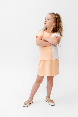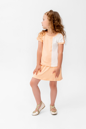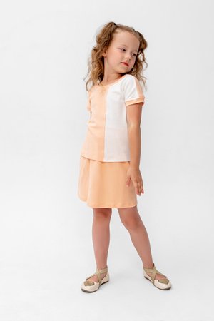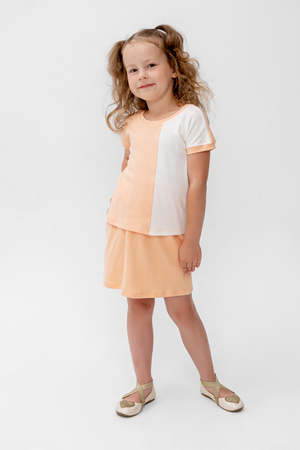 Легкий костюм для девочки, футболка и юбка. Выполнены из мягкой, приятной к телу ткани, интерлок 100% хлопок. Подходит для прогулок, для садика, для повседневного наряда. Легко стирается, просто утюжится.