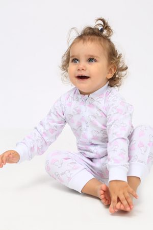 Модель: Комбинезон на молнии Белые Зайки с сердечками арт. КНМ-103