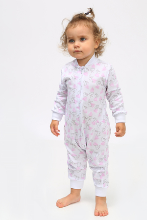 Комбинезон на молнии Белые Зайки с сердечками арт. КНМ-103