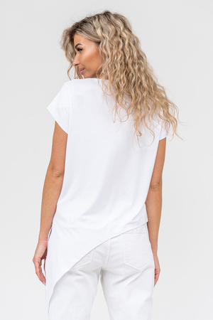 Женская футболка выполнена из приятного к телу вискозного полотна. Красивый V - образный вырез горловины, рукав с двойным крылышком и неровный низ изделия, переходящий в завязывающийся узел, идеально смотрится на любой фигуре. Современная футболка - это почти неотъемлемая часть гардероба любой женщины, в которой собраны все её неоспоримые достоинства - универсальность, удобство, красота и многовариантность.