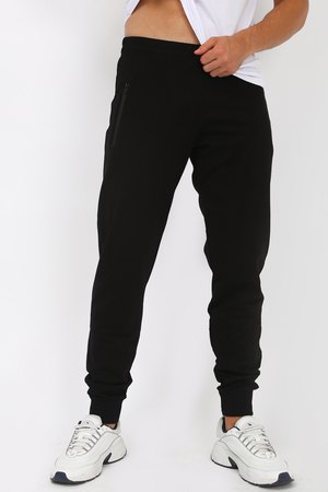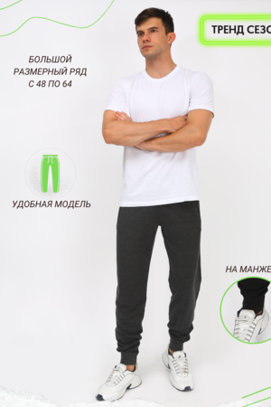 Стильные мужские спортивные брюки с манжетами, пояс на резинке, со шнурком внутри, который позволяет дополнительно регулировать объем. По бокам карманы на молнии. Трикотажные однотонные брюки - без начеса, не линяют, не садятся, не вытягиваются. Прекрасно подойдут для дома, повседневной носки, тренировок, активного отдыха.