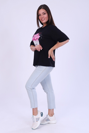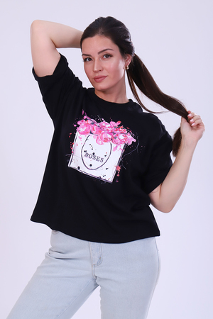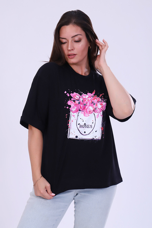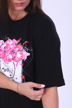 Футболка женская с ярким принтом в виде роз из мягкого, хлопкового трикотажа. Футболка свободного кроя, круглая горловина обработана эластичной рибаной. С втачным коротким рукавом на манжете. Самый универсальный элемент женского гардероба - это базовая футболка, сочетается с джинсами или юбкой, пиджаком, кардиганом.