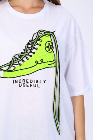 Футболка из мягкого хлопкового трикотажа с молодёжным 3Д принтом и декором-ярким шнуром. Модель свободного кроя в стиле оверсайз - это идеальное решение на каждый день. Круглая горловина обработана эластичной рибаной, спущенная пройма, широкий рукав. Красивые насыщенные цвета и творческий дизайн сделают эту базовую вещь незаменимой в вашем гардеробе.