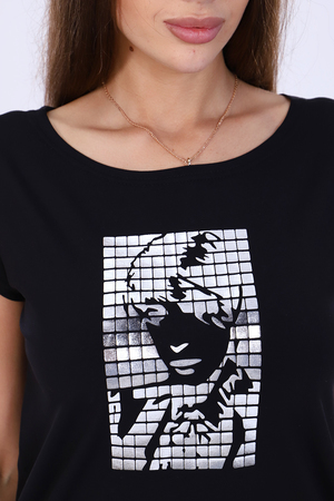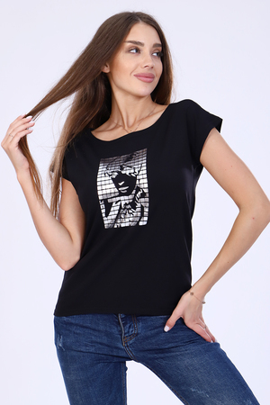 Футболка женская из кулирки с лайкрой премиум качества пенье, модель слегка приталенного силуэта, круглая горловина, спущенная пройма. Полочка декорирована оригинальным принтом из фольги. Футболка с принтом остается актуальным и современным вариантом для создания большого количества ярких и стильных образов. Идеально держит форму и долго сохраняет первозданный внешний вид. Футболка подчеркнет вашу индивидуальность, утонченный вкус и личный стиль. Восторг окружающих вам обеспечен! Рекомендация по уходу - ручная стирка или бережная стирка без отжима, глажка с изнаночной стороны.