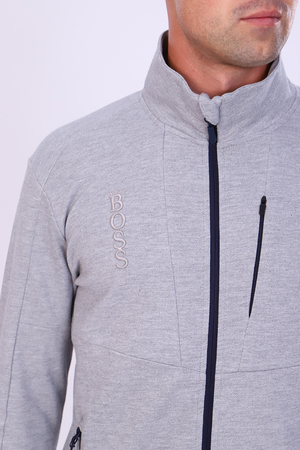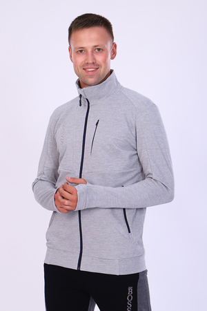 Толстовка мужская изготовлена из качественной, приятной к телу ткани пике. Материал не скатывается, не линяет, не вытягивается в процессе использования изделия. Толстовка на молнии, воротник-стойка. Имеются три прорезных кармана на молнии, два по бокам, одни размещен на груди. Молнии дополнены привлекательными пуллерами. Особенностью данной модели является манжет с прорезью для большого пальца кисти. На груди расположена текстовая вышивка в цвет изделия. Толстовка смотрится очень лаконично, но от этого не менее привлекательно. Удобная посадка, приятные расцветки позволят с удовольствием носить данную модель.