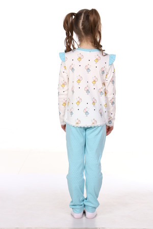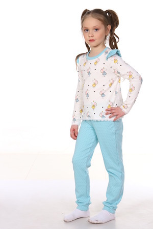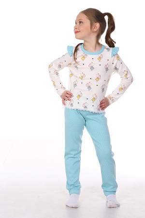 Комфортная пижама с длинным рукавом для девочки с милым принтом «Мышки», низ рукавов и изделия обрамлен кружевом. Спинка кофточки имеет фигурное удлинение. Брючки на мягкой манжете. Материал очень мягкий и в тоже время износостойкий, не скатывается и не вытягивается. Идеальный подарок на день рождения или 8 марта дочке, внучке.