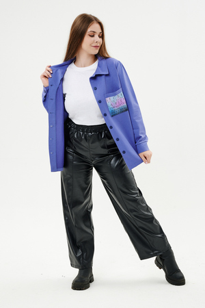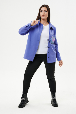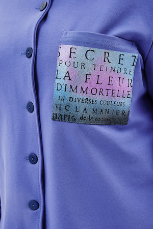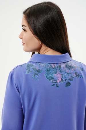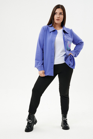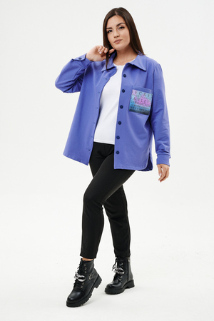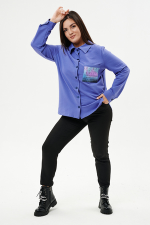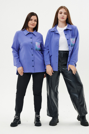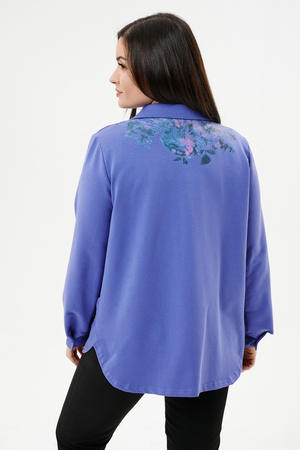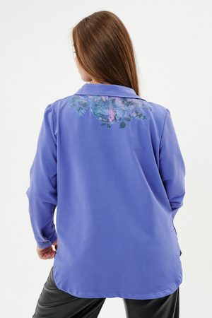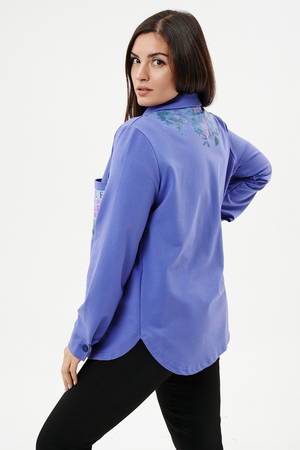 Туника женская прямого силуэта. Воротник отложной. Застежка на петли-пуговицы. Низ фигурный. Рукав втачной с манжетою. На левой части полочки нагрудный карман. Стилизованный принт в верхней части спинки, под воротником и на нагрудном кармане.