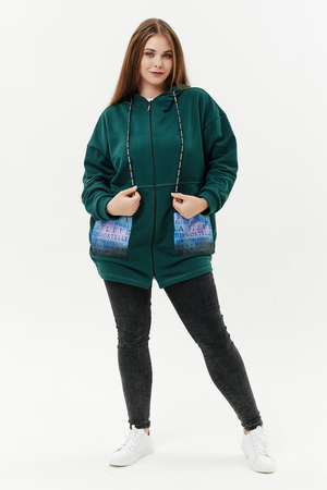 Покупатель на Ozon12.10.2025 в 07:30Шикарная толстовка! Малёк промахнулась с размером, оказалось плохо о себе думала))), могла спокойно взять 58! Зато теперь есть отличная одёжка красивая, удобная, можно вниз ещё одеть для тепла что-нибудь! Сшито очень качественно, сам фасон очень продуманный, карманы функциональные(большие и за счёт скоса небольшого, ничего не выпадет), капюшон большой, удобный, по длине тоже отлично(мне закрыло 5 точку). Цвет!!! Это отдельная песня очень глубокий и насыщенный, мне всё зашло! Большое спасибо производителю за нормальную одежду для крупных девочек!!! Рекомендую к покупке, однозначно!!!