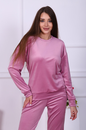 Женский домашний костюм, состоящий из джемпера с длинным рукавом и брюк. Брюки с карманами в боковых швах со скошенным входом для удобства, с широким притачным поясом на резинке, отделан декоративной отстрочкой. Низ брюк на притачной манжете из основной ткани. Джемпер свободного покроя с округлой горловиной чуть зауженный внизу манжетой за счет небольшой сборки. Рукав втачной, низ рукава на притачной манжете шириной 6 см. Костюм выполнен из нежной на ощупь бархатной ткани - иконвелюра, который переливается на свету и очень приятен на ощупь. Изделие не мнется, не требует глажки, что очень удобно в использовании. Можно носить дома, как домашний комплект, как пижаму для сна, а также на выход, как костюм для прогулок в холодное время года, как спортивный костюм, на дачу, для школы и т. д. Большой выбор нежных и насыщенных расцветок на любой вкус! Отличный подарок самым любимым!