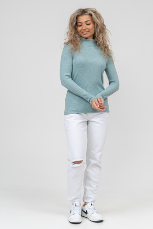 Стильная женская водолазка выполнена из кашкорсе с начёсом. Ткань гладкая с лица и ворсистая с начёсом - с изнанки неприхотлива в уходе и приятная на ощупь. Благодаря особой мягкости, комфортности при носке, дышащей структуре полотна, эта разновидность французского трикотажа широко распространилась по миру. Данная модель хорошо держит тепло зимой, позволяет телу дышать. Водолазку такого плана можно надевать дома, в качестве повседневной одежды, на работу или деловую встречу.