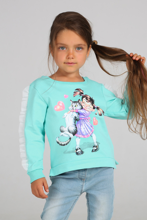 Яркая толстовка с печатью и декоративной рюшей на рукавах. Ваша модница будет чувствовать себя уверенно и красиво!