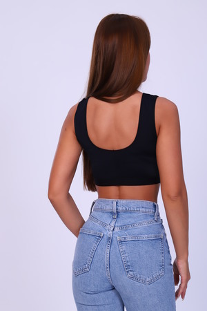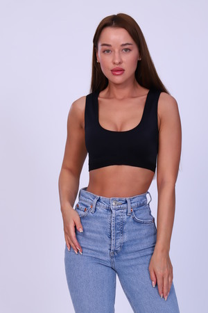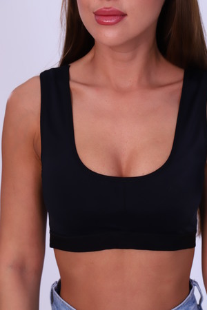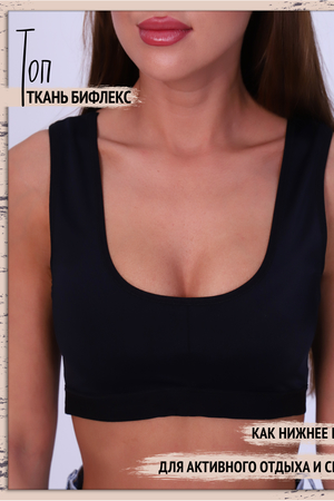 Топ из бифлекса из плотной лайкровой ткани. Подходит как нижнее белье, так и для занятия спортом. Также для повседневной носки.