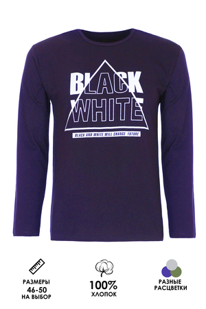 Мужской лонгслив без воротника Black White ФН170 с длинным рукавом