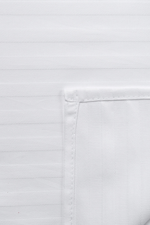 Материал очень красивый, элитарный, глянцевые полосы здесь чередуются с матовыми, при этом изнаночная и лицевая стороны выглядят одинаково. Состав ткани страйп-сатина для постельного белья полностью натуральный – здесь присутствует только хлопковая нить высокого качества. Для пошива постельных принадлежностей используется полотно с плотностью расположения нитей 120-150 г/м², что обеспечивает хорошую мягкость и прочность белья. По завершению плетения выполняется мерсеризация полотна – обработка раствором каустической соды. Такая процедура увеличивает блеск поверхности, плотность и прочность ткани, служит защитой от выгорания.