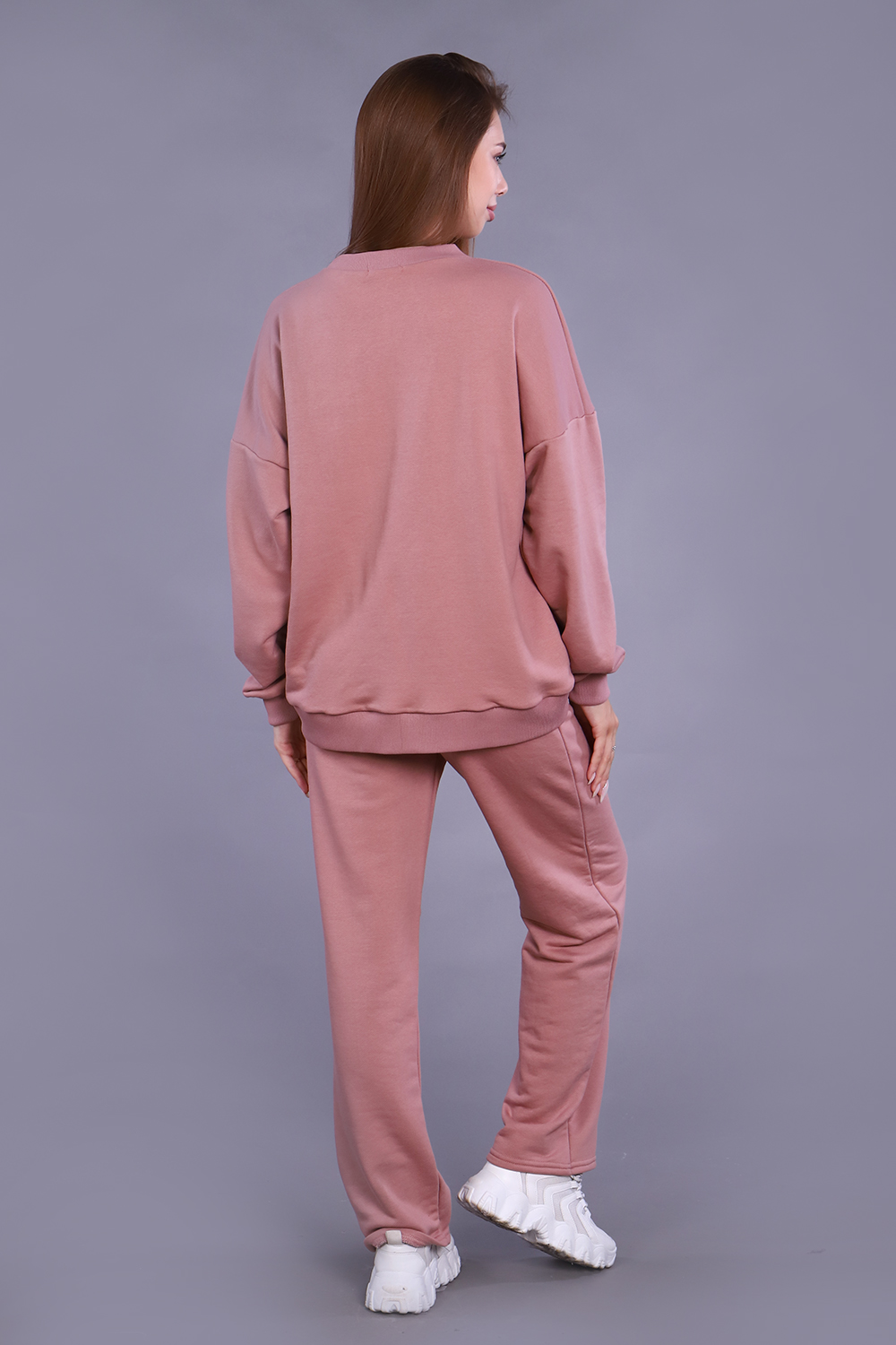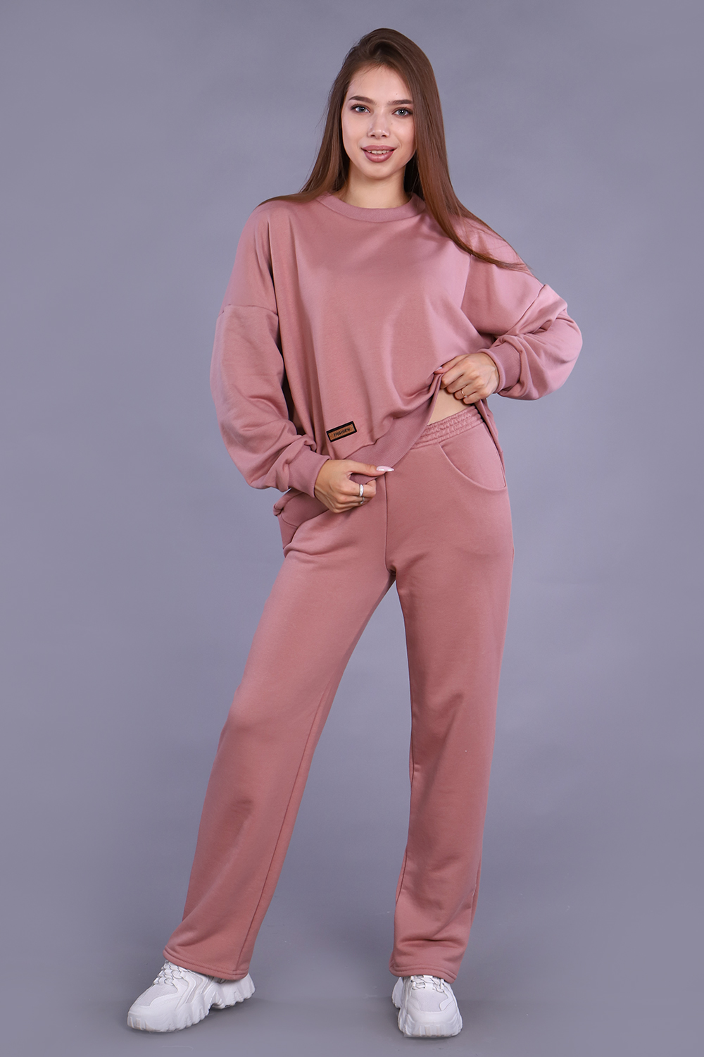 Молодёжный костюм в стиле оверсайз из футера 3-х нитки качества пенье, который обладает отличными тепловыми свойствами. Толстовка свободного кроя, круглая горловина, длинный рукав и низ обработаны эластичной, качественной кашкорсе. Асимметричная длина толстовки и широкие брючки с удобными карманами придают костюму неповторимый свободный образ и позволяет чувствовать себя максимально комфортно и уверенно. С наступлением холодов для повседневной носки и активных тренировок на улице невероятно актуальным становится тёплый костюм, прекрасная альтернатива объёмным курткам и джинсам.
