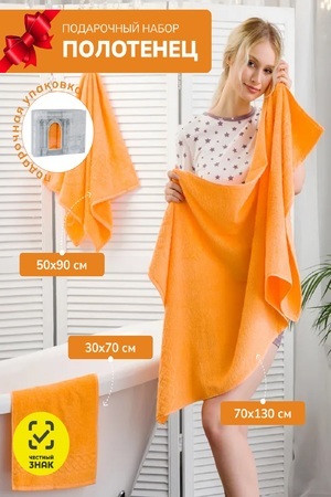 Подарочный набор махровых полотенец в количестве 3 шт. в очаровательной коробке. В набор входят полотенца размером 30*70,50*90,70*130 Изготовлены из 100 % хлопка, отличаются своей экологичностью, износостойкостью и замечательно впитывают влагу. Череда праздников совсем близко: дни рождения, юбилеи и долгожданные новоселья. Нужно успеть запастись подарками для наших родных и близких людей. Комплект махровых полотенец станет идеальной находкой на любой случай и событие жизни, прекрасно подойдет для девочек и мальчиков, для женщин и мужчин. Обрадуйте маму, бабушку, мужчину, любимую, подругу, сестру и брата, подарите тепло, выразите свою любовь и заботу по отношению к ним. Мягкие и приятные на ощупь, они идеальны в использовании для рук, лица, волос, тела, ног. Детские и взрослые, полотенца махровые с одинаковой нежностью окутают вашу кожу, подарят атмосферу домашнего уюта. Свободно можно использовать как в качестве банного, так и кухонного. Сделайте верный выбор и насладитесь качеством товара! ПЛОТНОСТЬ ПОЛОТЕНЕЦ 380гр/м2. Обращаем Ваше внимание, что дизайн коробки может отличаться.