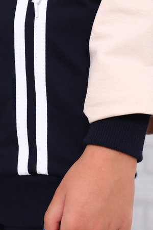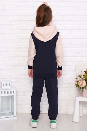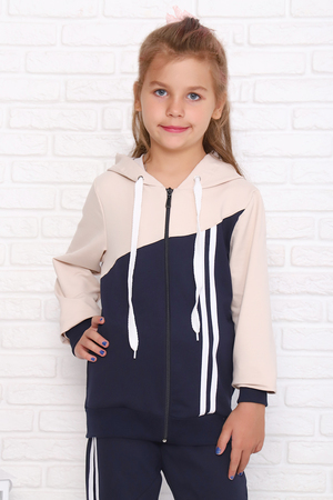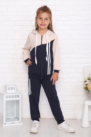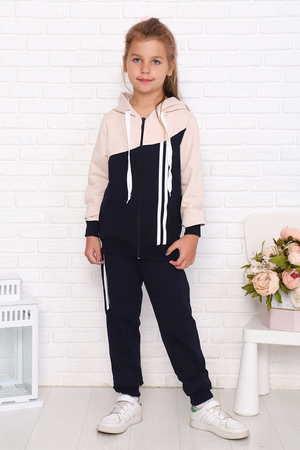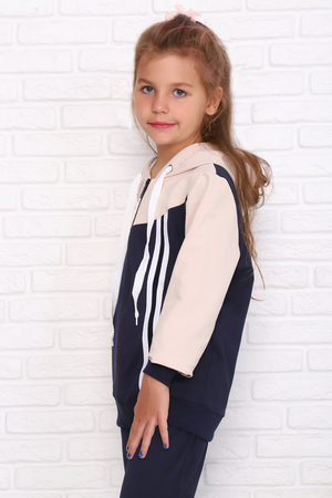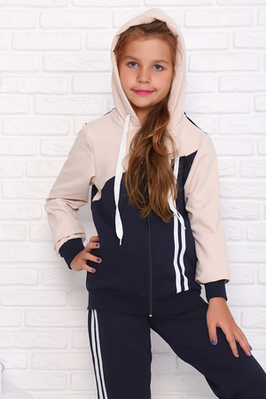 Костюм из футера 2 -х нитки подростковый на девочек. Кофта с капюшоном, рукав длинный, по переду отделка из футера другого цвета с лампасами. Брюки длинные на манжете с лампасами.