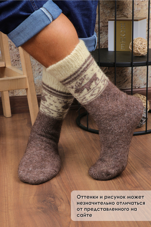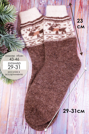 Носки шерстяные выполнены из 95% шерсти, 3% полиамида и 2 % акрила. Размер: 29-31. Шерстяные носки с красивым рисунком идеально подойдут для новогодней фотосессии, в подарок близким. Теплые носки из натуральной шерсти придают уют в холодную погоду. Незаменимы для тренировок и повседневной носки в холодное время года. Высокие, утепленные и очень удобные. Отличный подарок на новый год. *цвет и рисунок может незначительно отличаться от представленных на сайте.