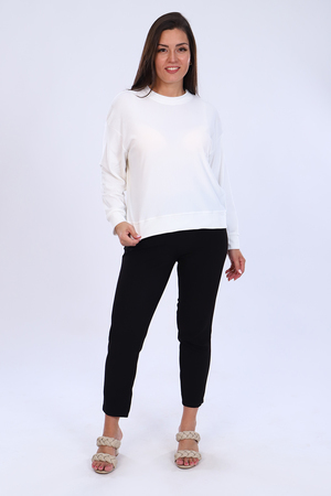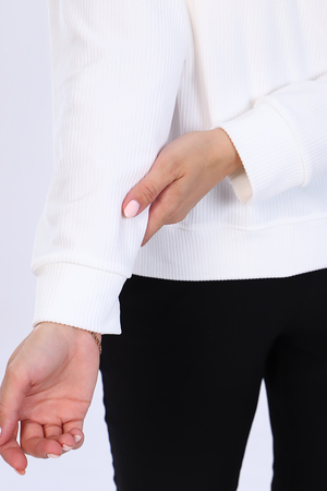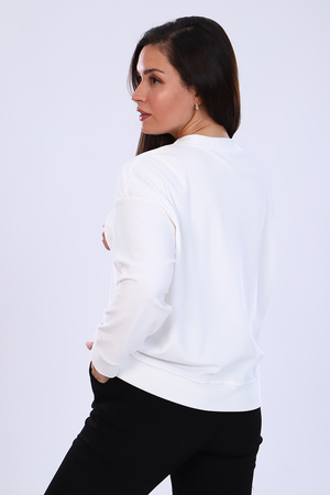 Теплый свитшот из мягкой ткани молочного цвета, свободного силуэта. Широкий пояс и длинный рукав на манжете функциональны и подчеркивают уютный и мягкий образ. Современный, укороченный, свободный свитшот в актуальном цвете, из мягкого нежного материала не оставит вас равнодушными.