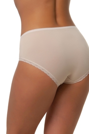 Однотонные трусики для женщин нежных пастельных цветов с кружевной резинкой по ножкам и ажурной резинкой по поясу.
