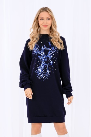 Олени - неотъемлемый атрибут Рождества. Традиция использовать в новогоднем убранстве рождественских оленей завоевала большую популярность во всём мире. В этой уютной удобной домашней тунике из футера двух нитки с начёсом комфортно находиться в домашней обстановке. В ней можно встретить праздник, использовать в повседневной носке и в качестве подарка. Туника свободного кроя, рукава с напуском. Все манжеты на изделии выполнены из плотной рибаны с лайкрой. Длина рукава в измерениях указана от основания шеи. Изделие украшено шелкографией с серебристым глиттером.