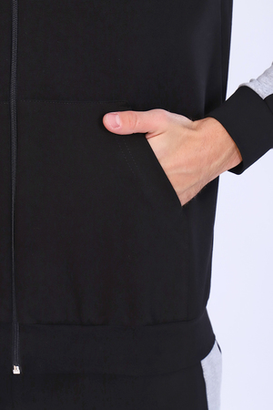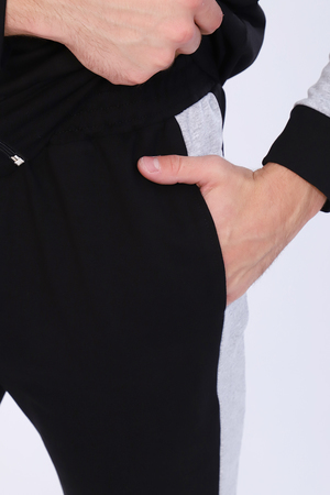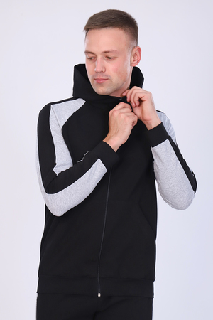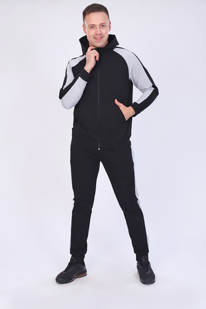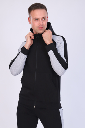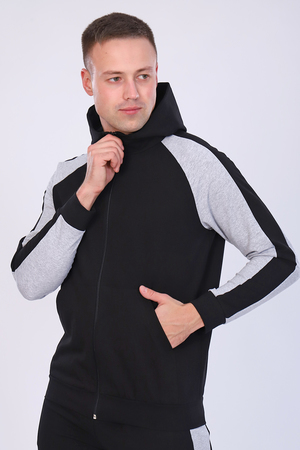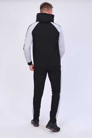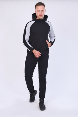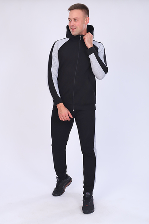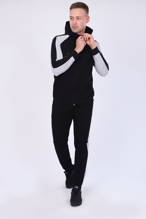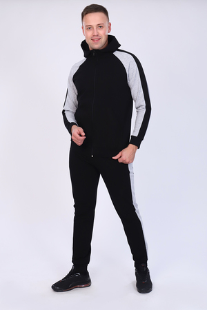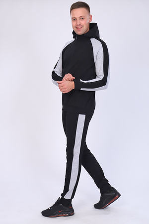Костюм мужской олимпийка на молнии, карман кенгуру, капюшон продублирован хлопковой подкладкой и брюки с карманами с лампасной вставкой и манжетами, комбинированная отделка