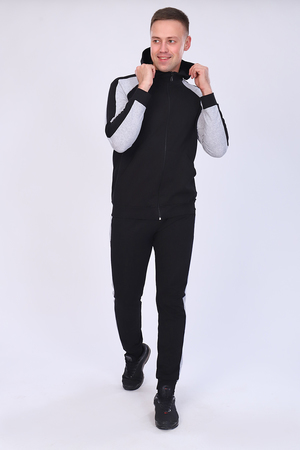 Костюм мужской олимпийка на молнии, карман кенгуру, капюшон продублирован хлопковой подкладкой и брюки с карманами с лампасной вставкой и манжетами, комбинированная отделка