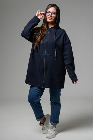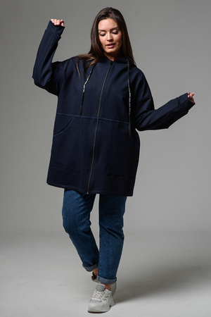 Мне понравилась, единственное, нет воротника, когда одеваешь капюшон и затягиваешь, горло открыто. Очень широкие манжеты, может быть я и оставила это изделие себе, но манжеты не держат вообще. Сшито хорошо, ткань приятная, но почему-то меня смущает количество заявленного хлопка, хотя, могу ошибаться.