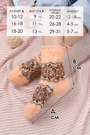 Носки шерстяные изготовлены из 95% шерсти, 3% хлопка и 2% полиамид. В упаковке 2 пары одного размера и разных расцветок, расцветки в ассортименте. Теплые, мягкие, вязаные носочки для детей. Идеальный вариант, как для дома, так и для прогулок прохладными, зимними днями. Носки не спадают с ножки ребёнка, мягкая резинка. Носки изготовлены из шерсти с добавлением хлопка. Благодаря этому носочки обладают отличными терморегулирующими свойствами, позволяет коже ребёнка дышать и сохраняет тепло. Цветовая гамма, подходят как для мальчика, так и для девочки. Обратите внимание, что рисунок, оттенки и цвета – могут незначительно отличаться от представленных на фото. Носочки являются хорошим дополнением к любому подарку.
