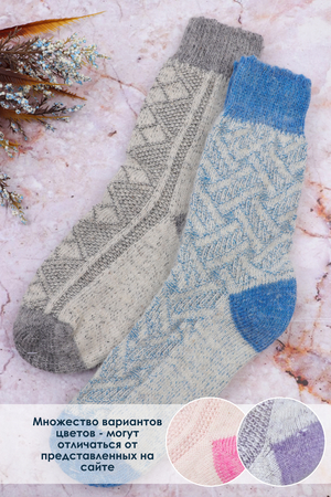 Носки шерстяные женские выполнены из 80% шерсти, 15% хлопка и 5% эластан. В упаковке 2 пары одного размера, разных цветов.