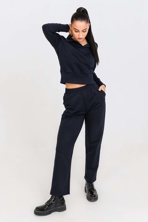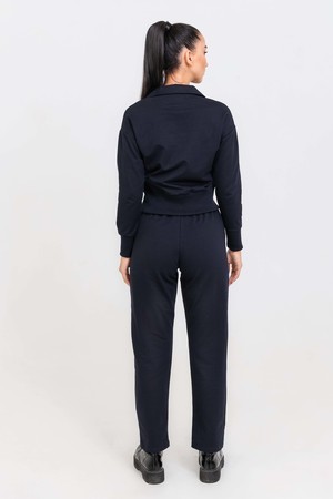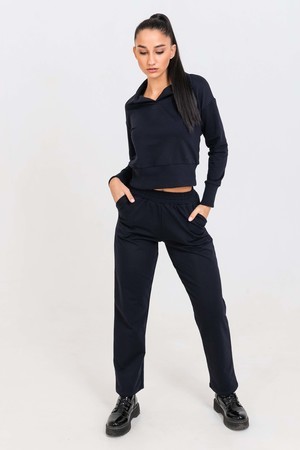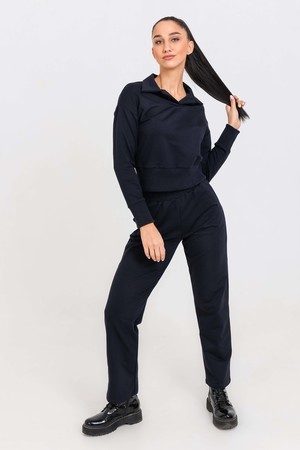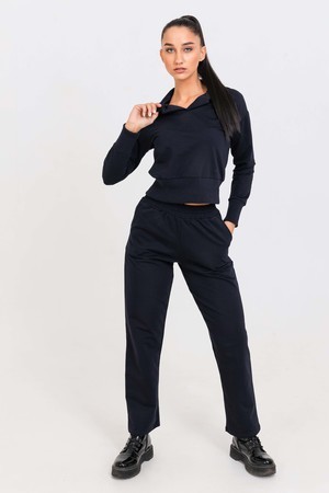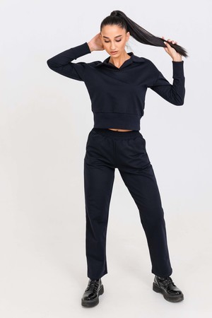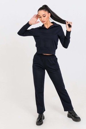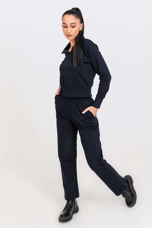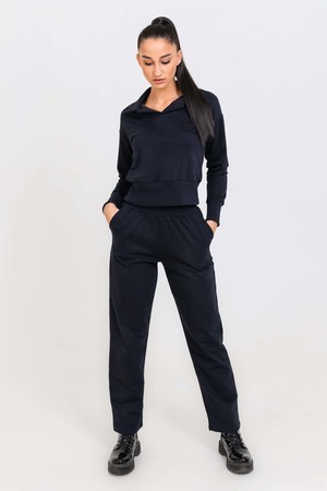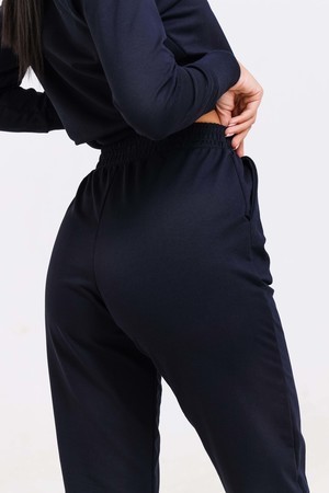 Костюм для любого мероприятия. Благодаря небольшому количеству полиэстера и лайкры, он не будет деформироваться в процессе эксплуатации. Брюки в классическом стиле с высокой посадкой. Деформация резинки исключена, так как она прошита на поясной машине. Ширина пояса 5 см. Карманы с отрезным бочком. Джемпер имеет вырез, оформленный втачным воротником и планкой-поло. Рукав плавно переходит в манжет без напуска. Широкий манжет украшает низ джемпера. Джемпер не длинный, поэтому видно красивый пояс. Костюм отлично подчёркивает красоту фигуры. В измерениях длина рукава указана от точки основания шеи.