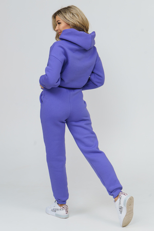 Костюм состоит из объёмной толстовки с капюшоном на запах и брюк с боковыми карманами. На полочке толстовки есть модный и удобный накладной карман. Манжеты рукавов и брюк выполнены из качественного кашкорсе. Линия плеча спущена. Длина рукава указана от точки основания шеи. Пояс брюк выполнен на специализированной поясной машине.