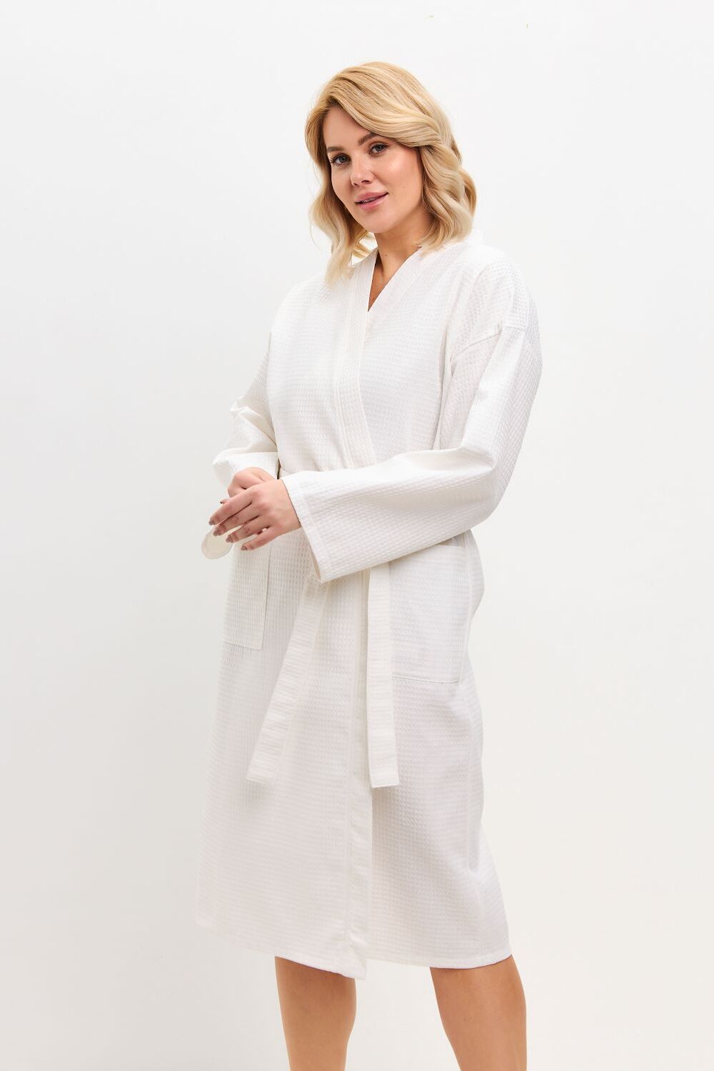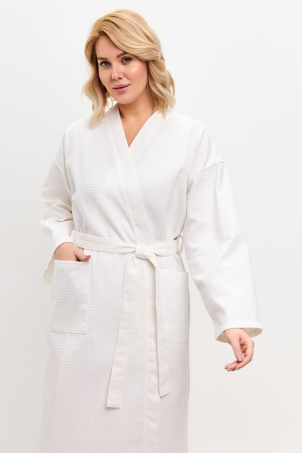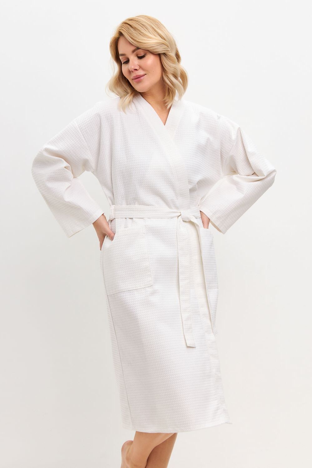 Вафельный халат- кимоно отельный. Рукав длинный. Карманы накладные. Воротник планка. Плотность вафельного полотна 225 гр.