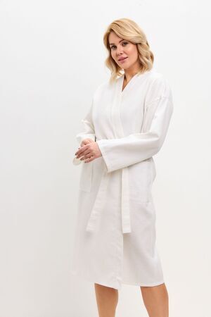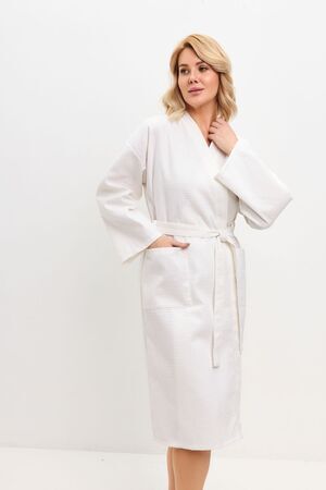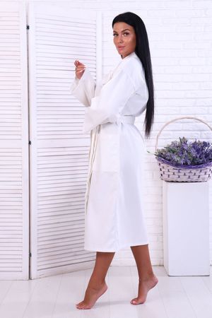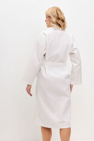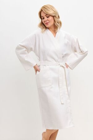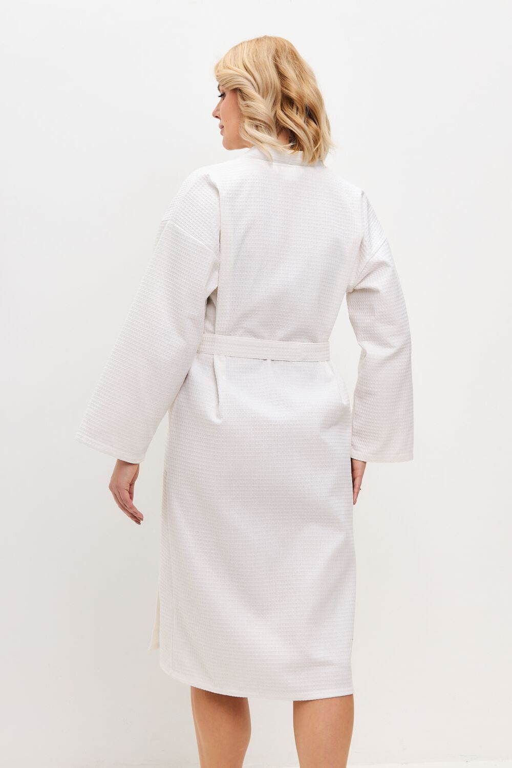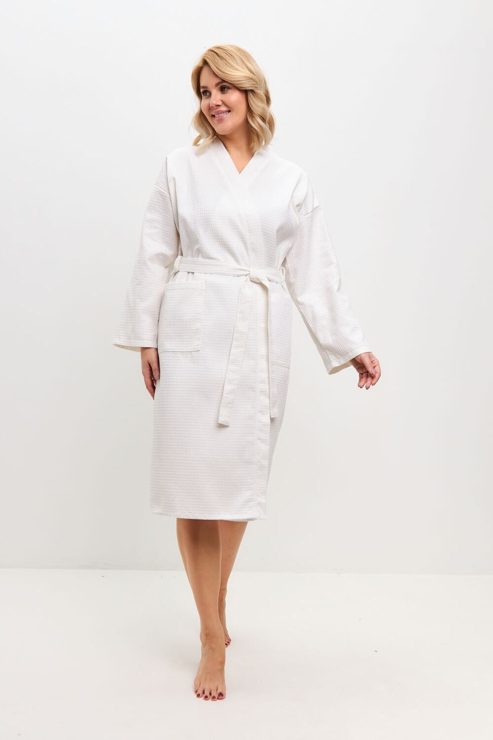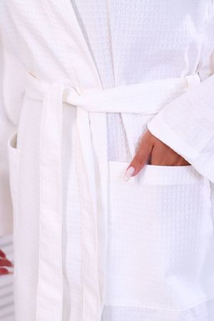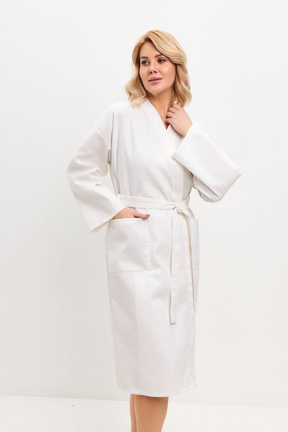 Вафельный халат- кимоно отельный. Рукав длинный. Карманы накладные. Воротник планка. Плотность вафельного полотна 225 гр.