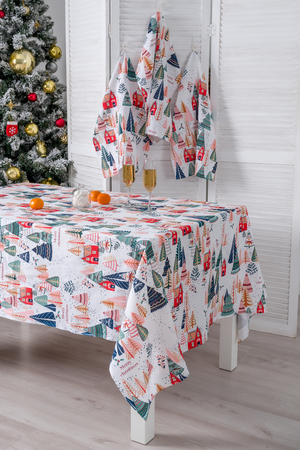 В дополнение к скатерти можно заказать кухонные полотенца Merry Christmas (продаются отдельно)
